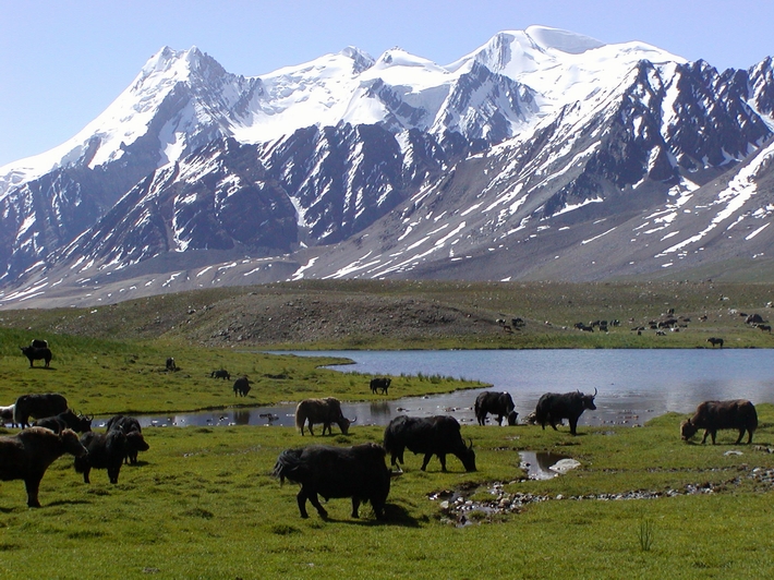 Yaks in the pasture of Hindu-Kush Valley Trekking in the green valley, Naltar-Gilgit View of VIGNE PEAK (6841M) from Vigne Glacier towards to Gondoghoro Pass Camping in YARKHUN VALLEY, along the Afghanistan Border (Wakhan Corridor)